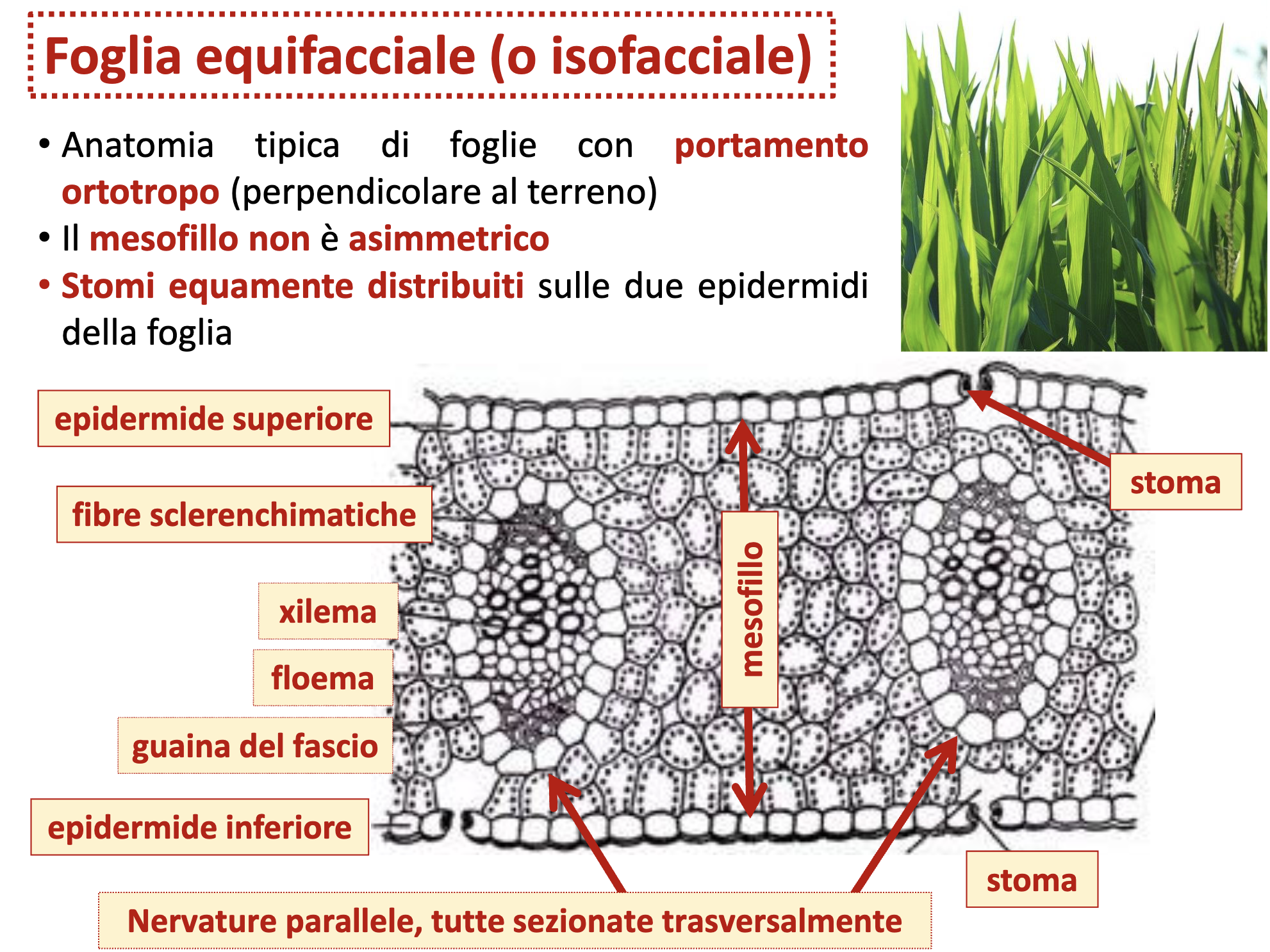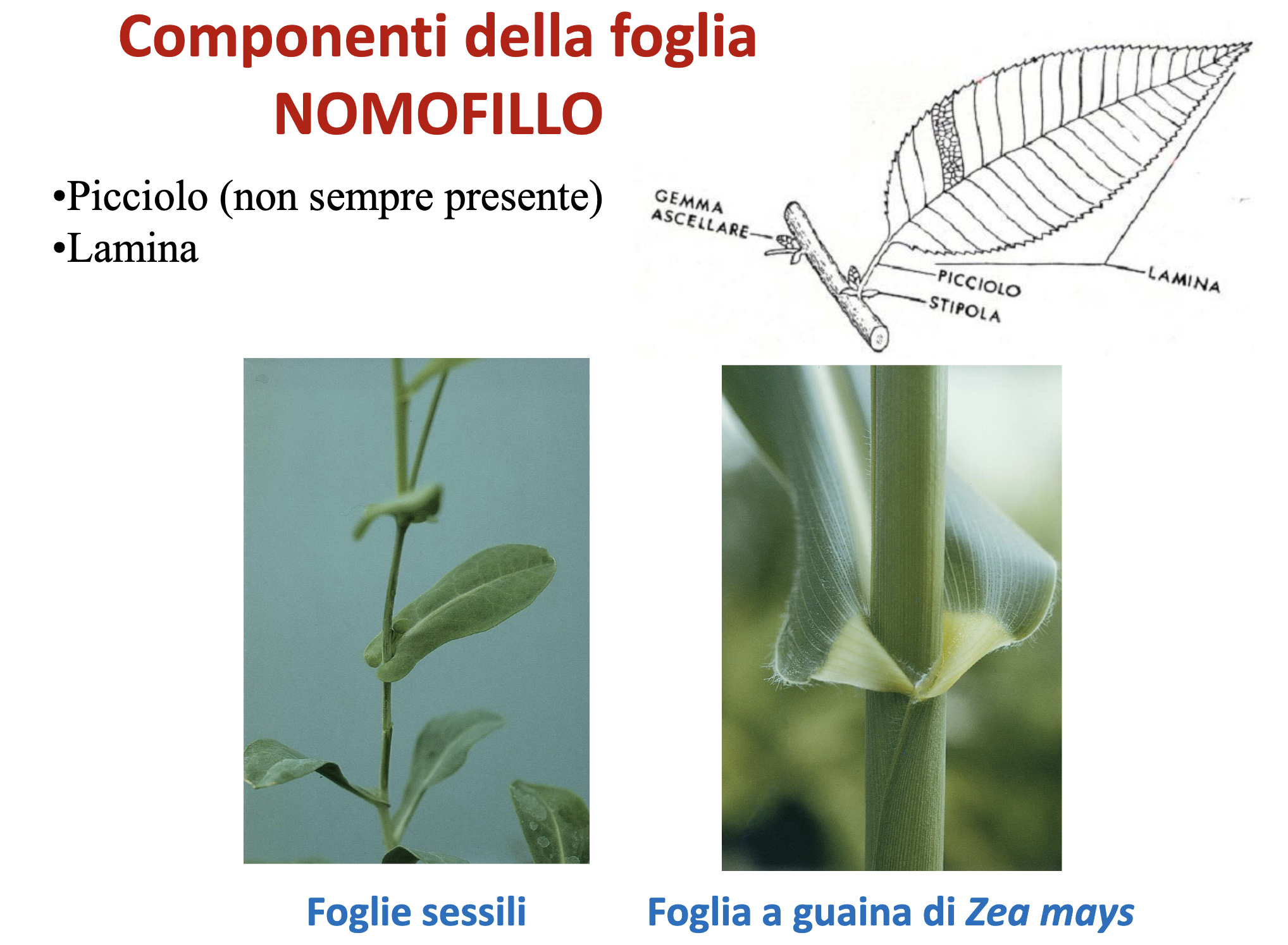 - Graminacee: foglia a guaina