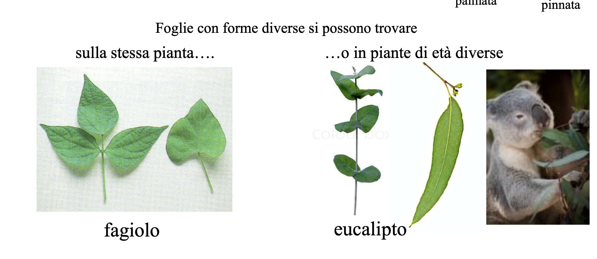 - Fagiolo: foglie semplici e composte contemporaneamente