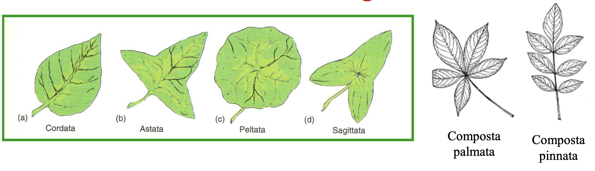 - Forme: cordate, astate, peltate, sagittate