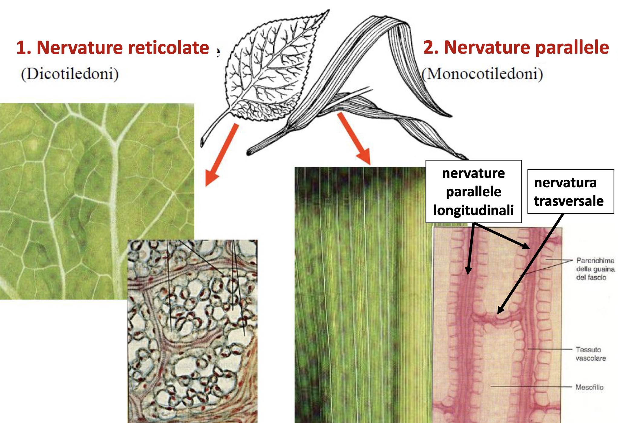 - Percorso: picciolo → nervatura principale → ramificazioni