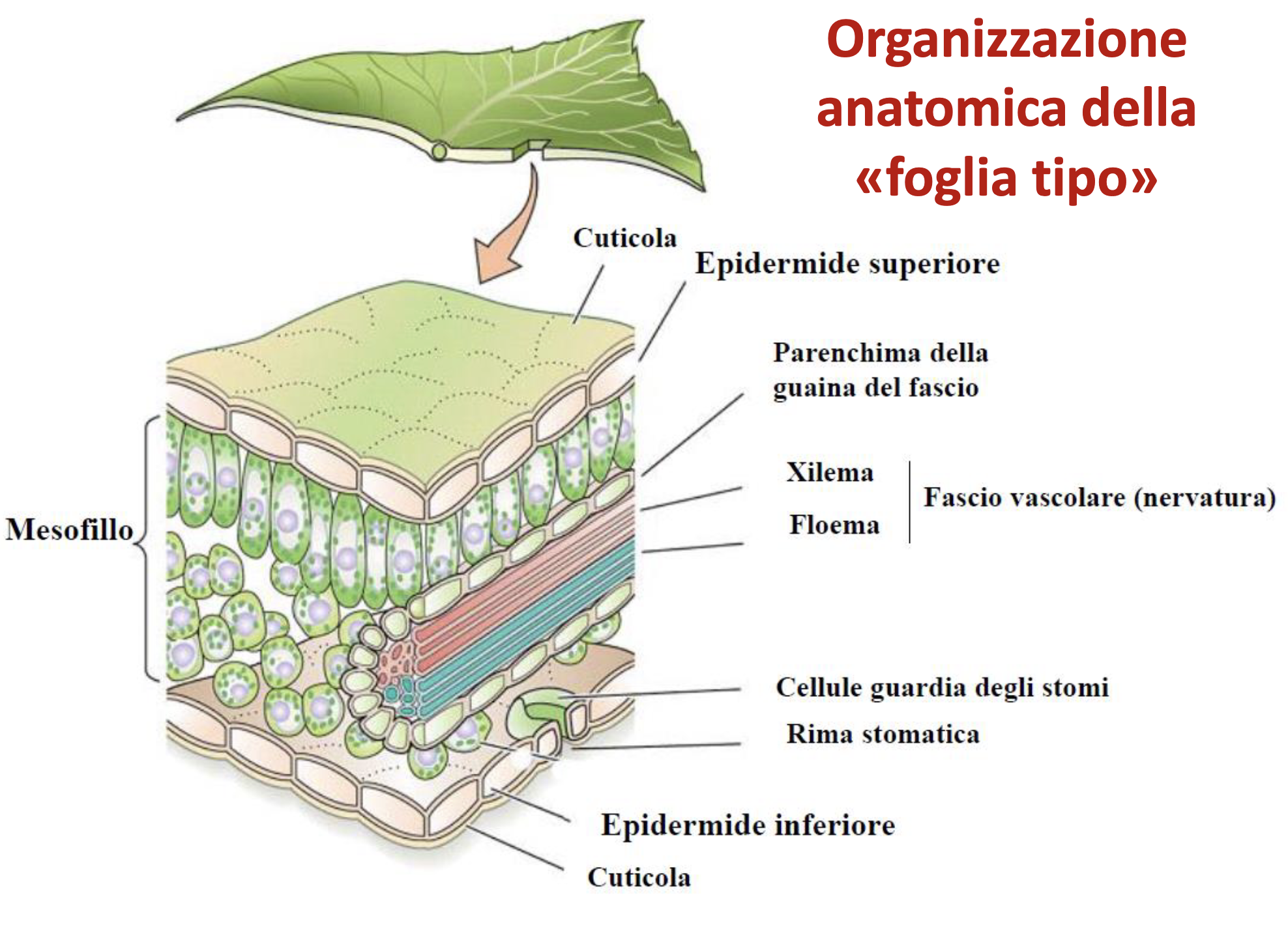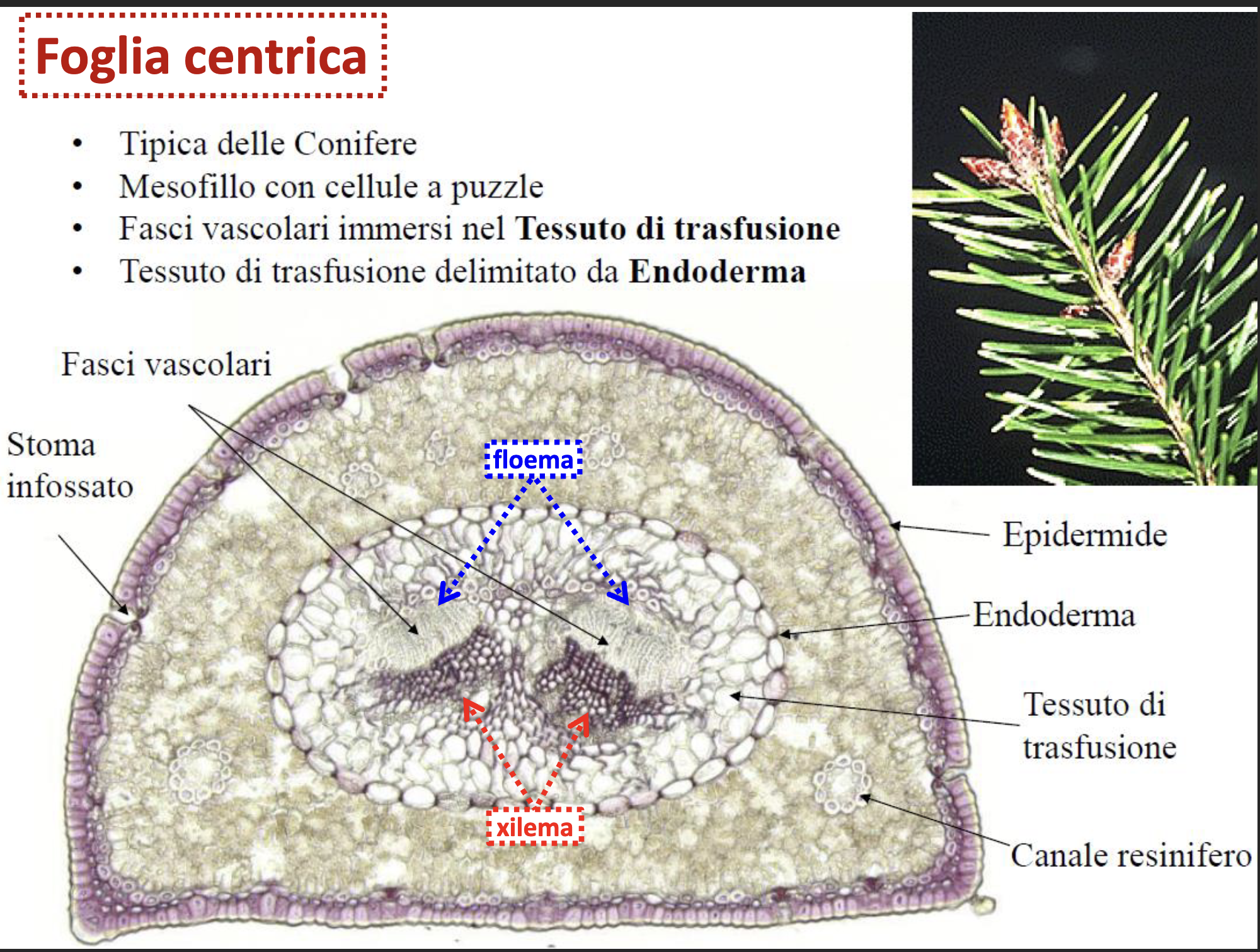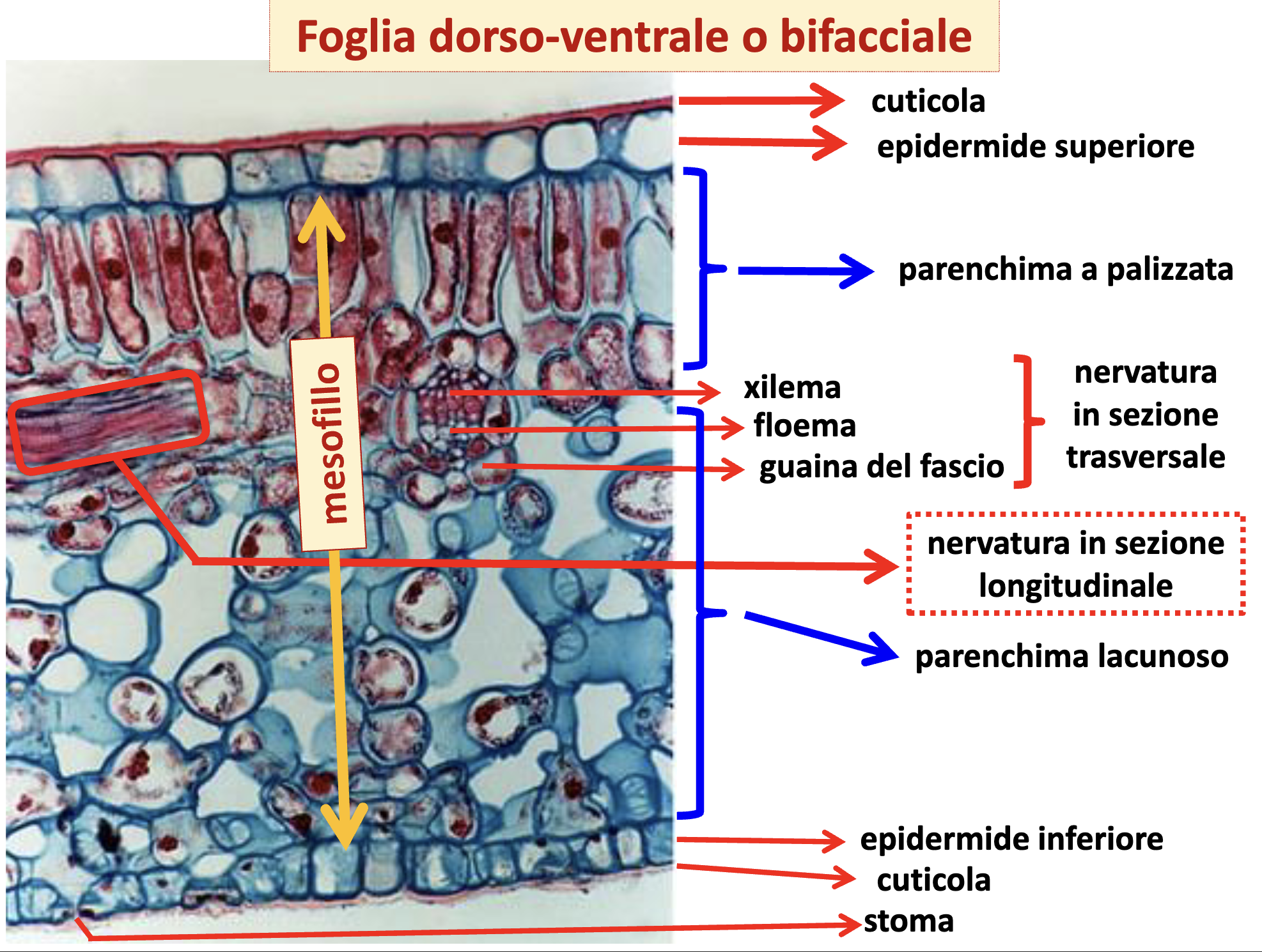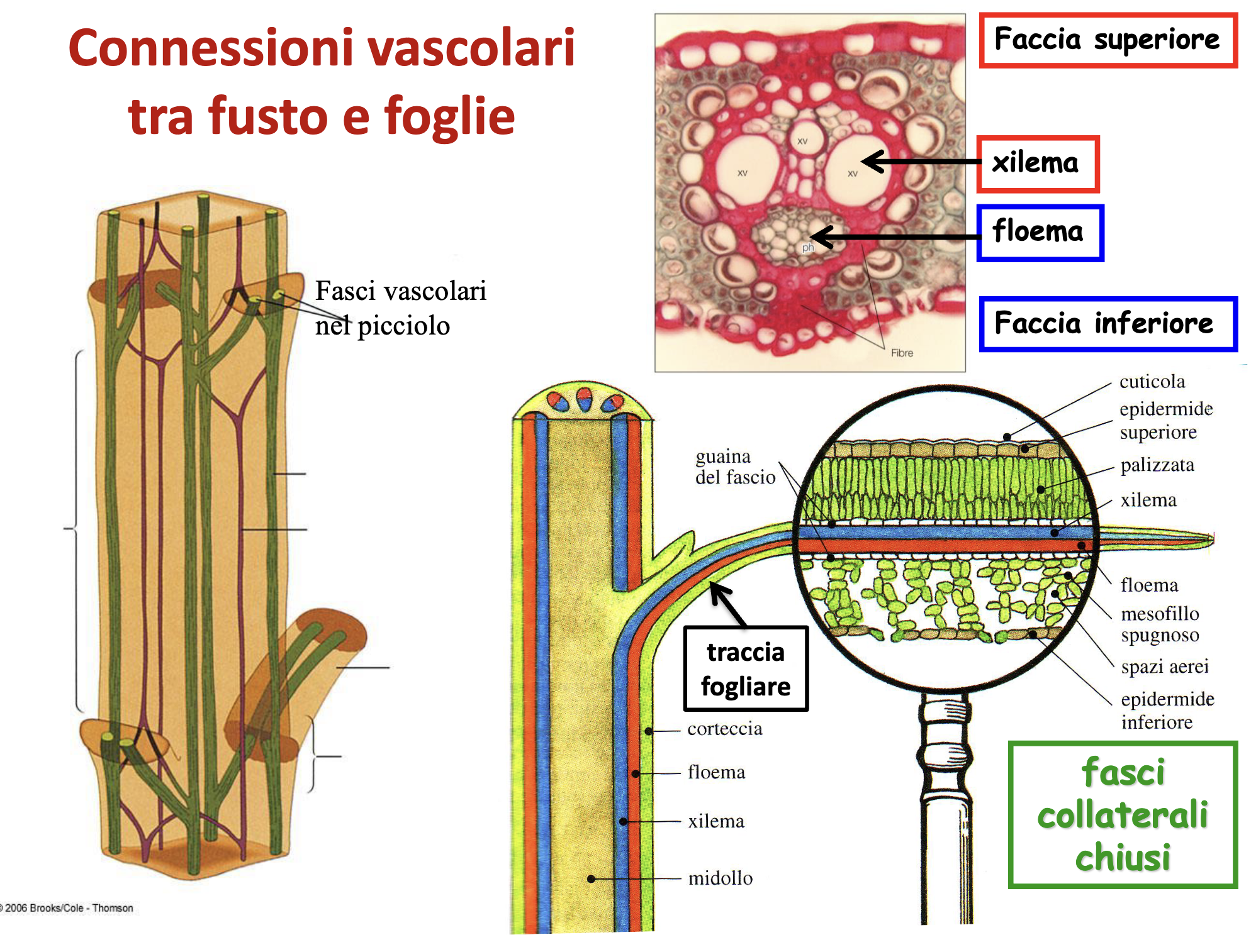 - Orientamento: floema verso pagina inferiore, xilema superiore