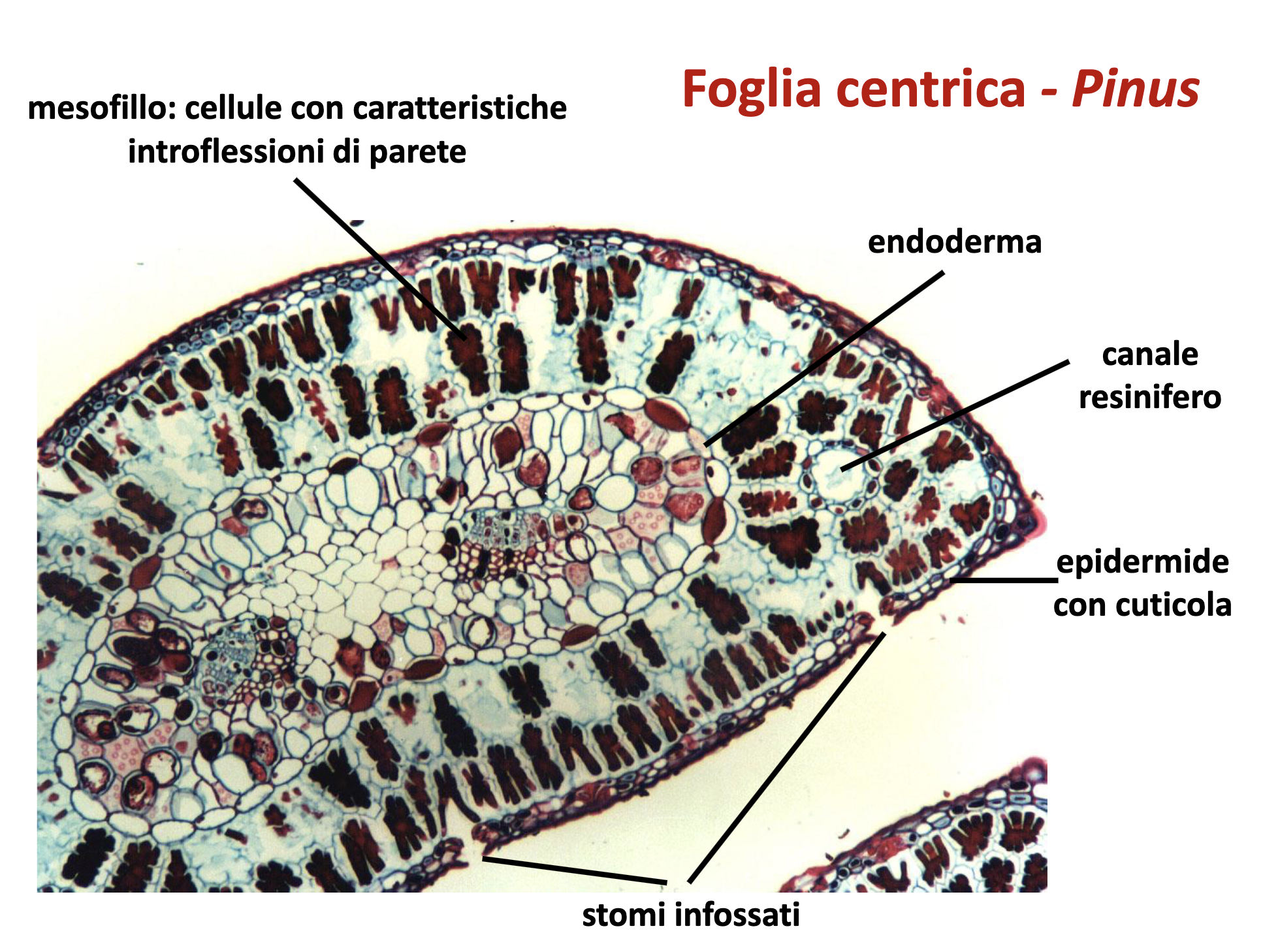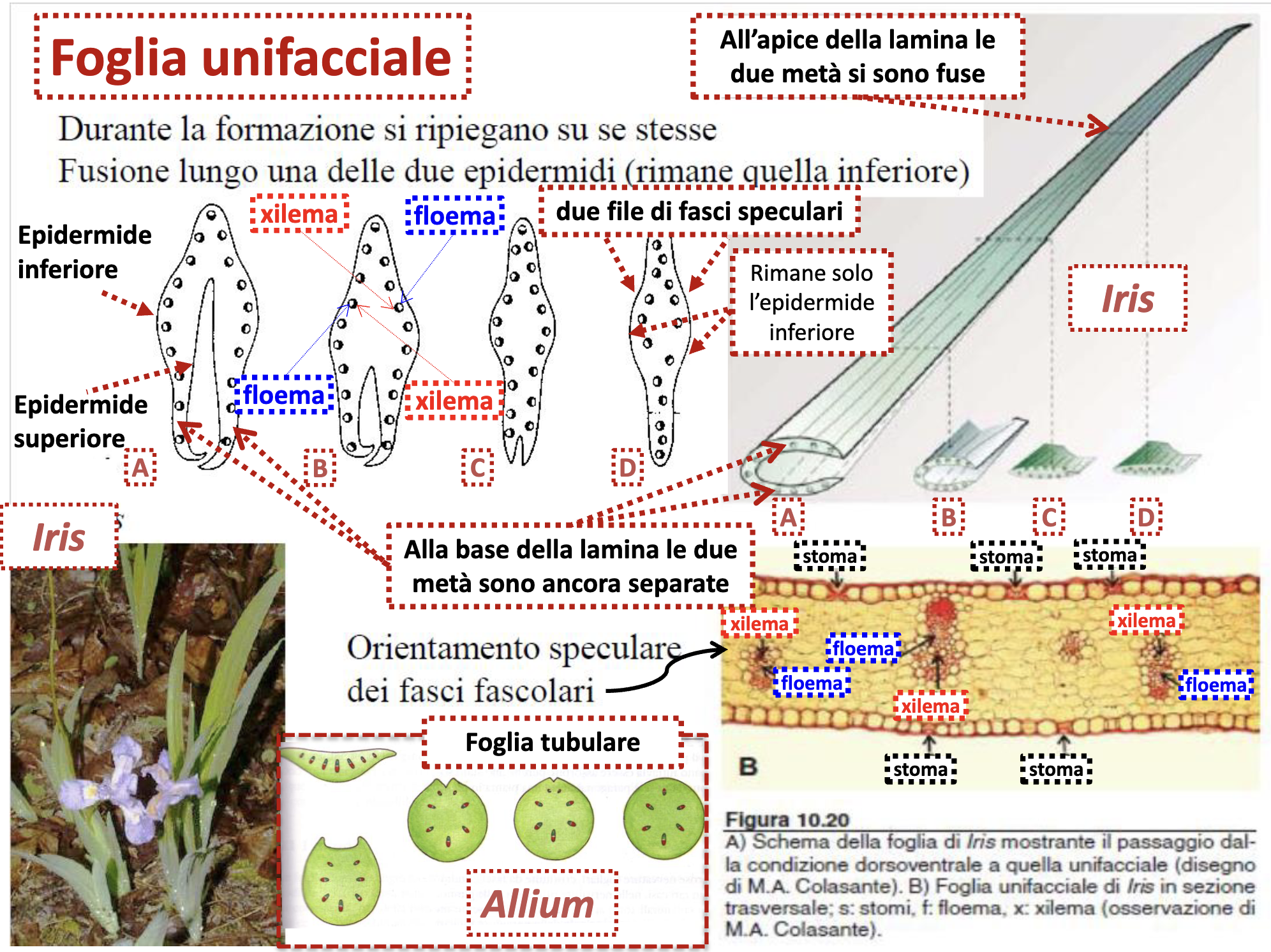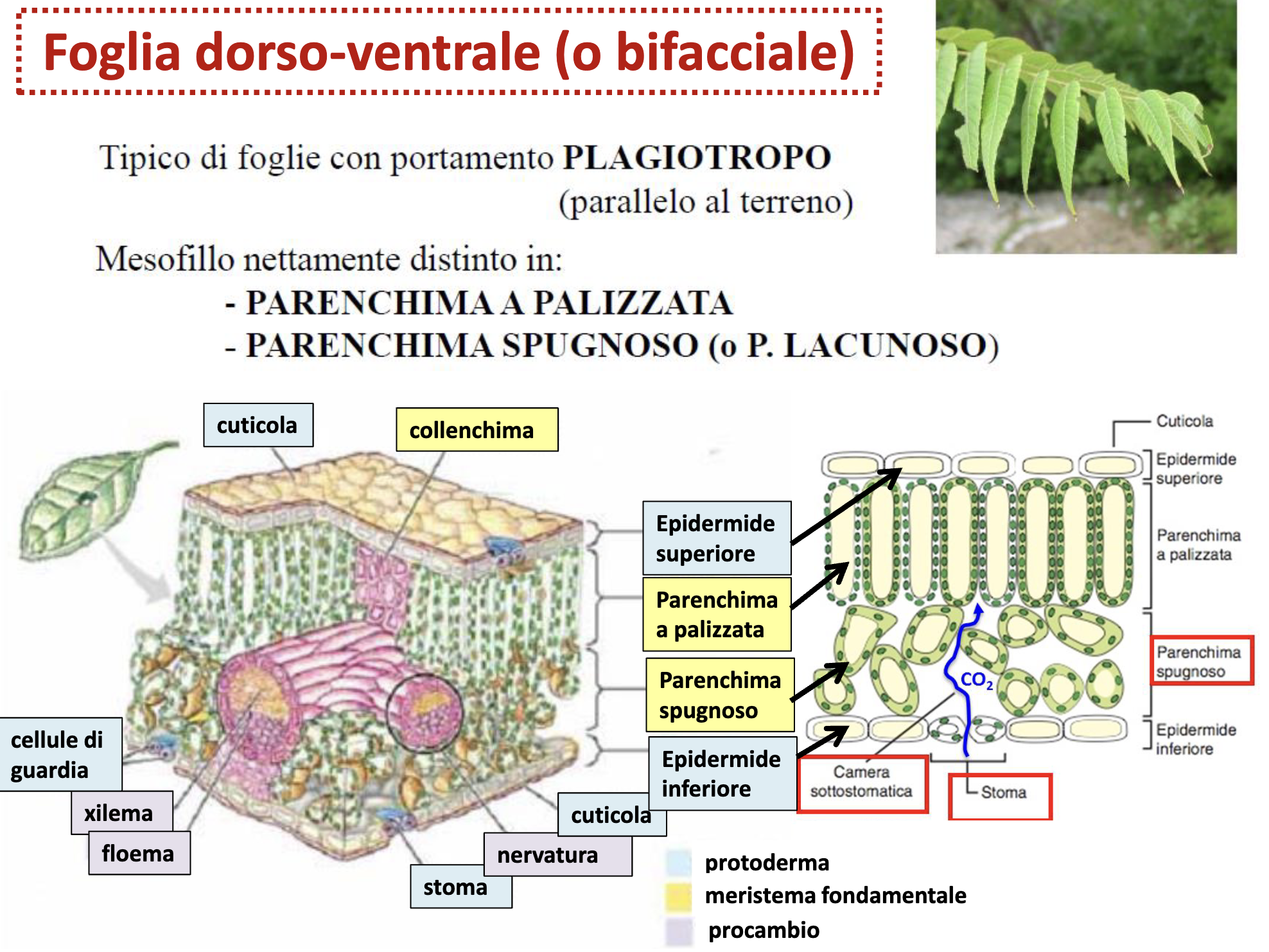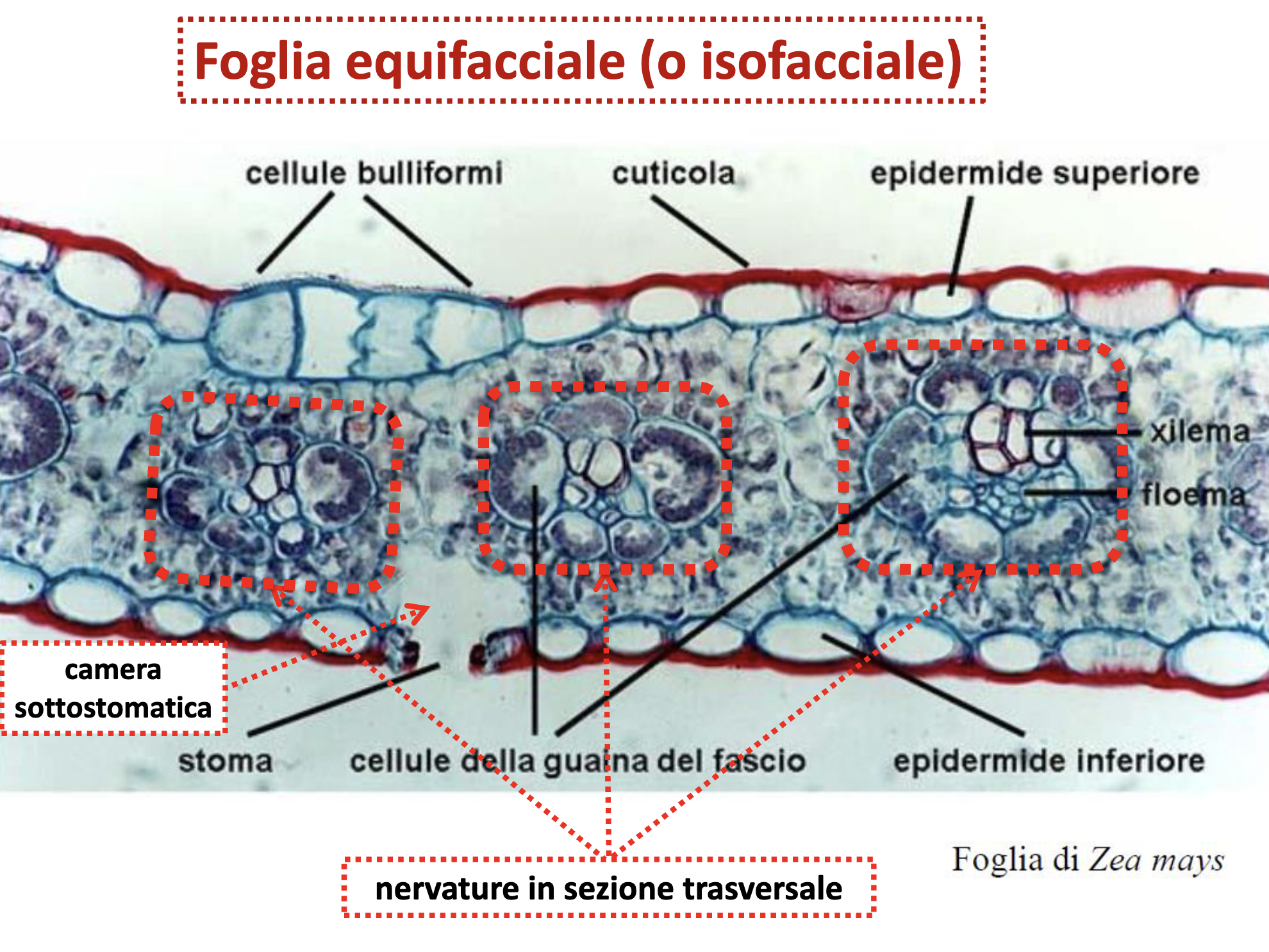 - Orientamento: floema verso pagina inferiore, xilema superiore