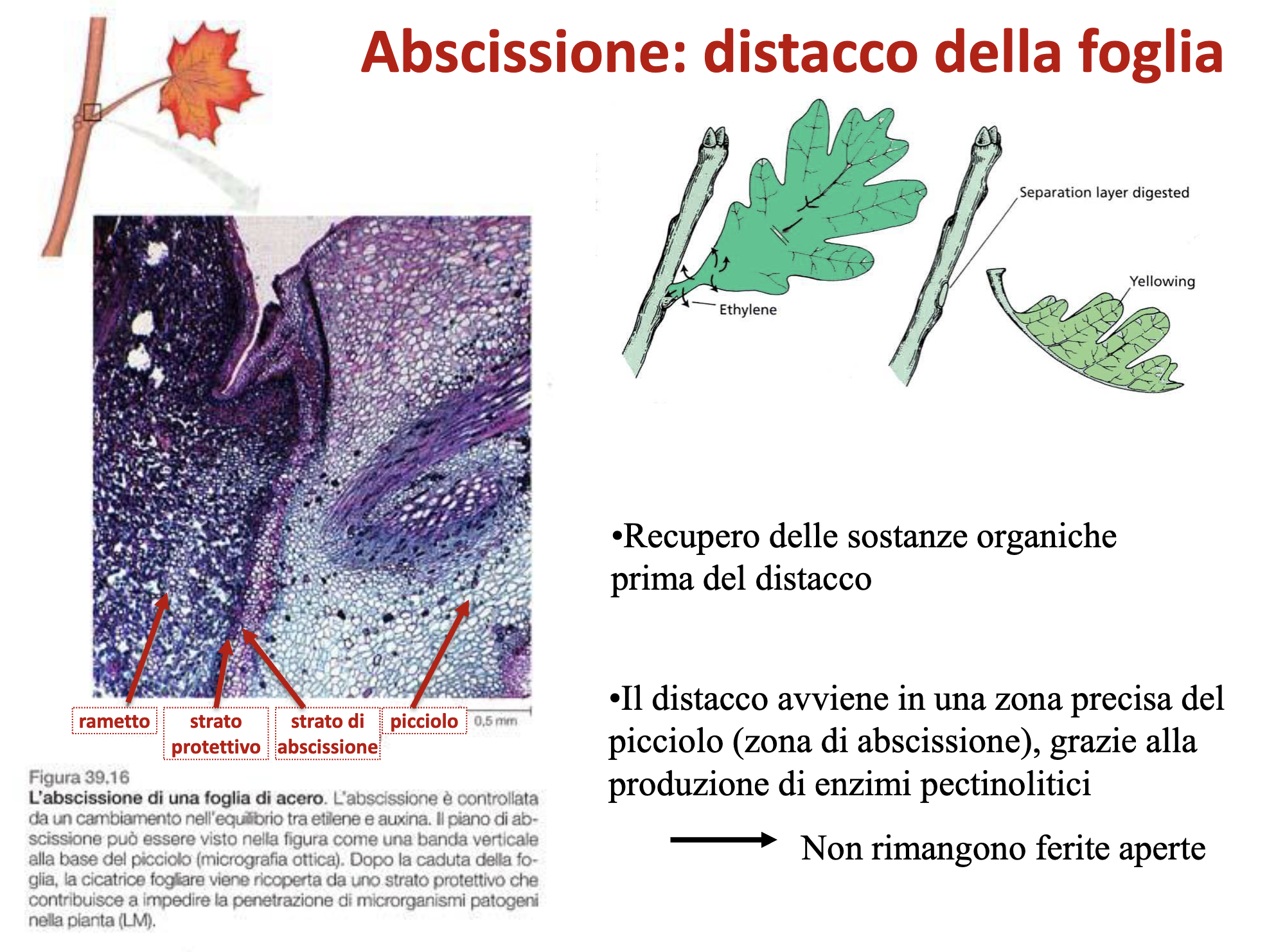 - Strato di abscissione: degradazione enzimatica pectina