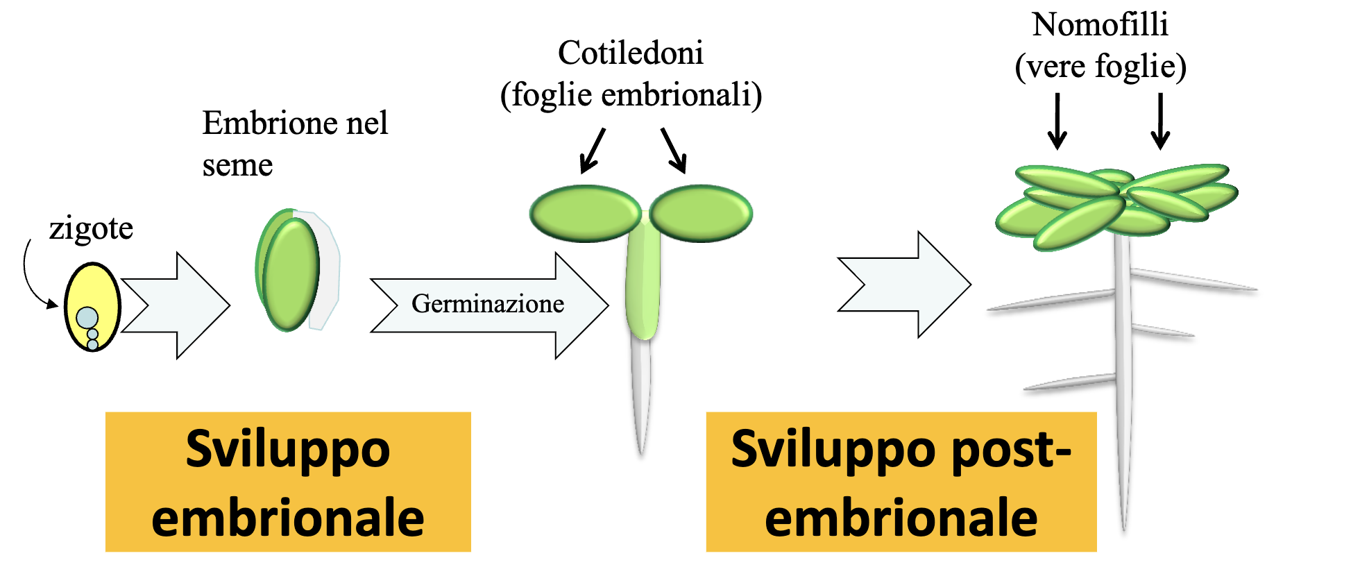 - Cotiledoni: foglie embrionali (accumulo riserve)