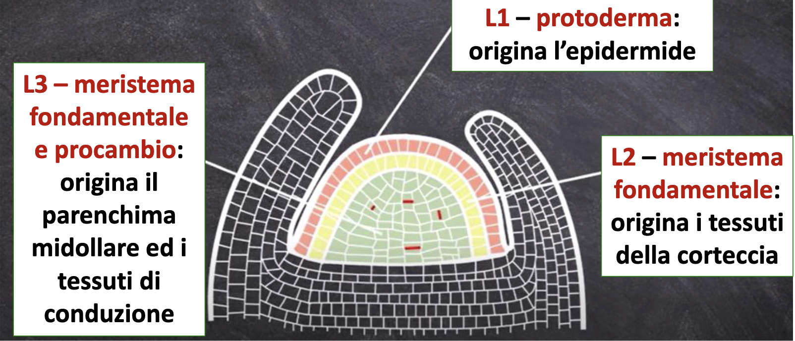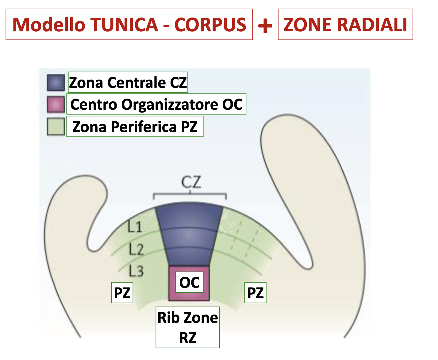 - Tunica (L1 + L2): divisioni prevalentemente anticlinali