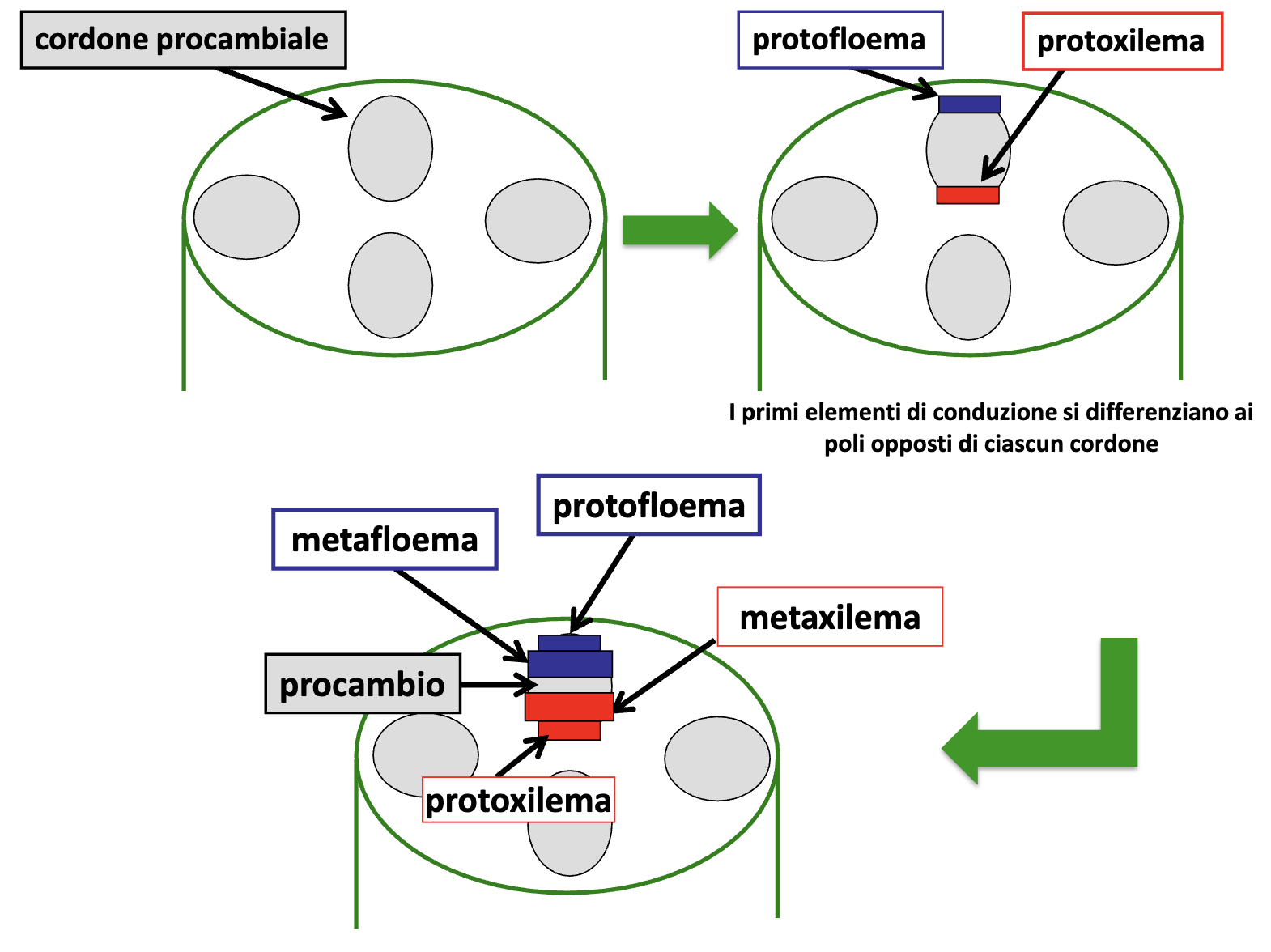 Sviluppo progressivo: cordoni procambiali → fasci vascolari maturi